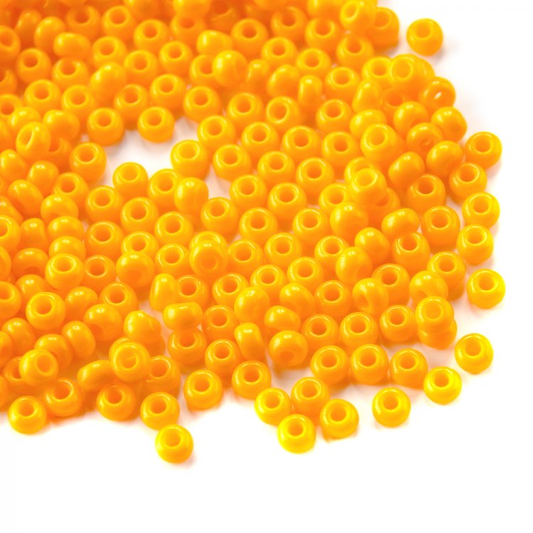 Бисер Чехия стекло №10 цвет 93110, 5 гр в упаковке. Темно-желтый глянцевый (керамический) не прозрачный.