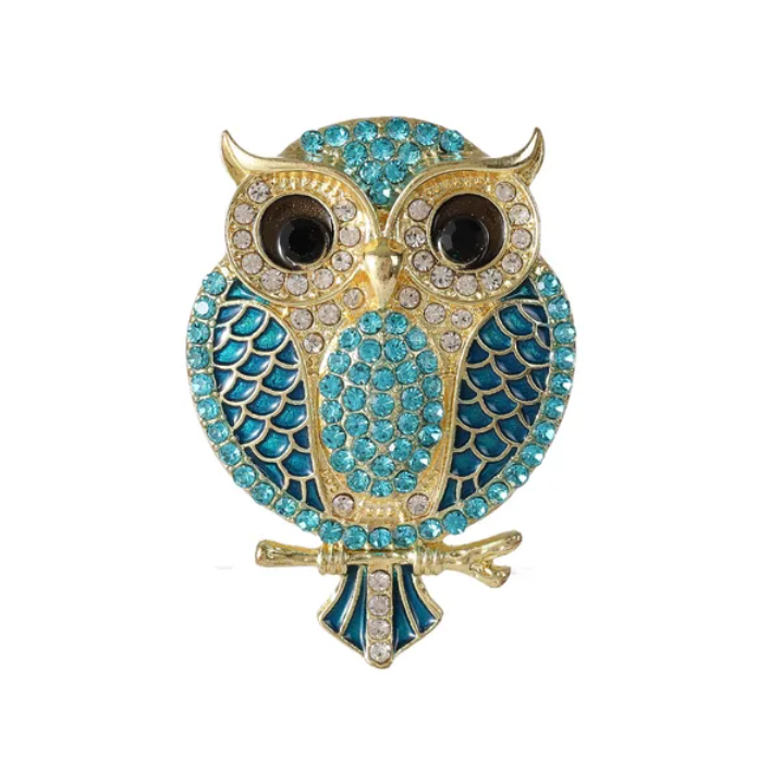 Брошь Бирюзовая СОВА металл/ эмаль/ стразы MOON-289