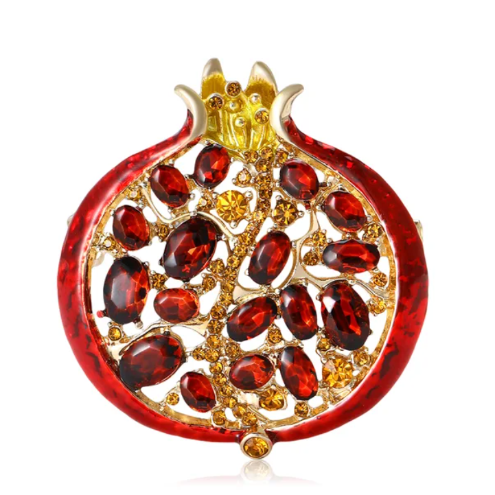 Металлическая брошь со стразами в виде плода граната. Размер 33 мм х 35 мм. Вес 9 гр.