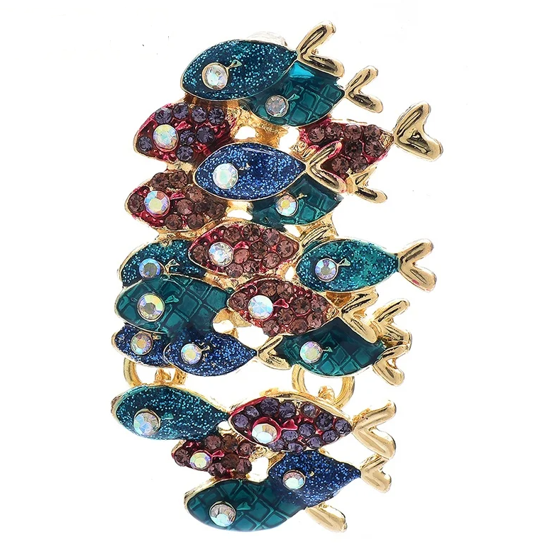 Брошь Косяк рыбок со стразами и эмалью (W&B.4028)