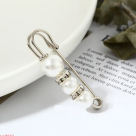 Брошь булавка 45 мм с 3 бусинами жемчужинами, цвет серебряный Разные цвета FSGZ-45S