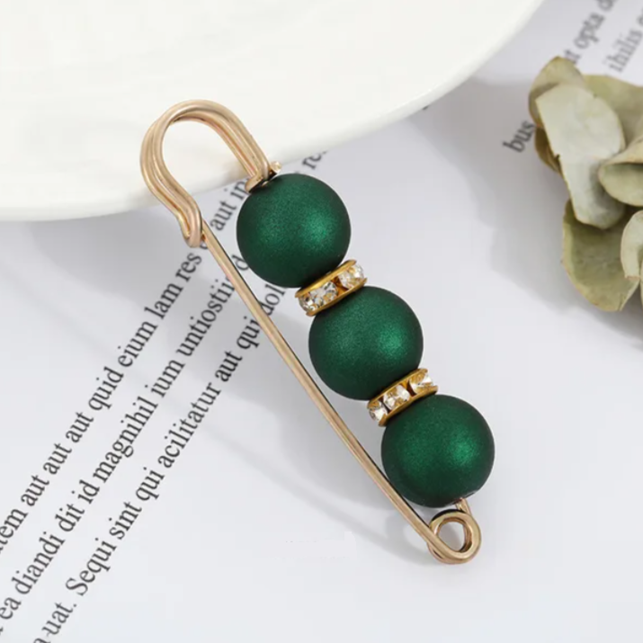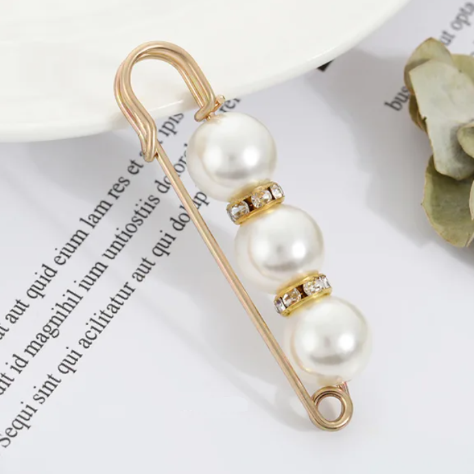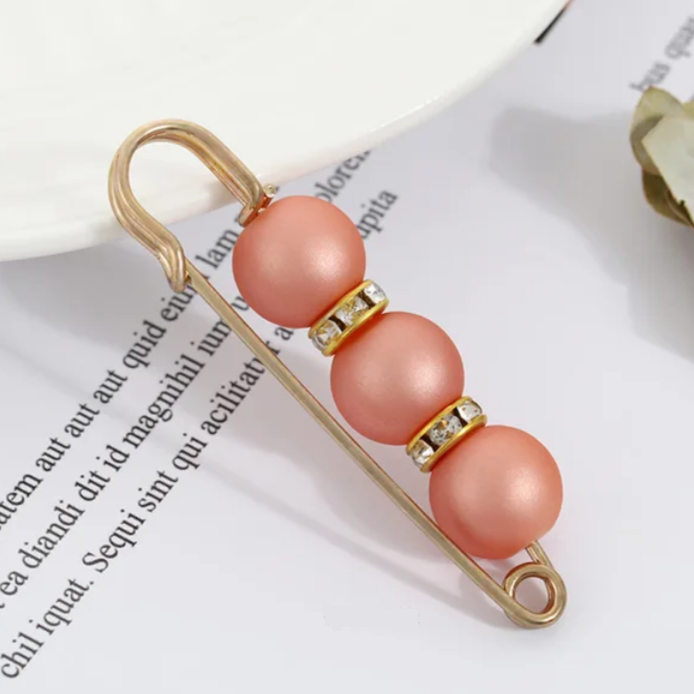Брошь булавка 55 мм с бусинами жемчужинами и стразами, цвет золотой. Разный цвет бусин. FSGZ-55