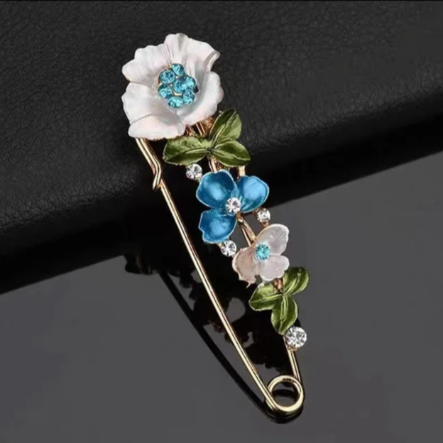 Брошь в виде булавки с цветами очень многофункциональна. Она может украсить повседневную одежду и внести изюминку в праздничный наряд. Размер 79 мм х 21 мм Цвет выбирайте.