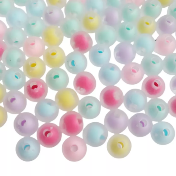 Матовые акриловые бусины с эффектом войной стенки. Размер внутреннего отверстия 2 мм. Микс цветов в одной упаковке. Количество штук в упаковке зависит от размера.
