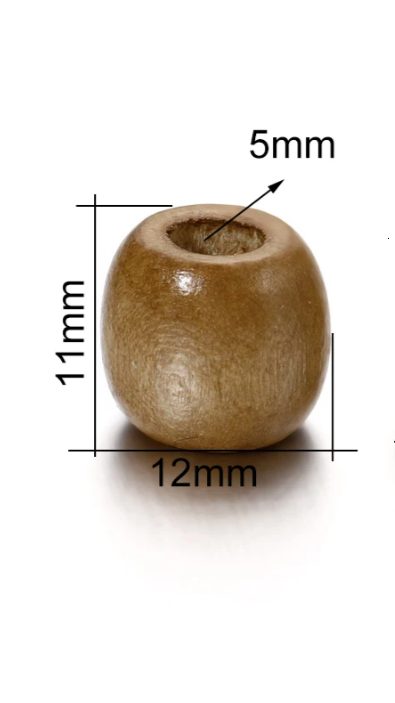 Деревянные бусины 12 мм с большим отверстием. 18 штук в упаковке. Такие бусины вплетают в косы и дреды, из них изготавливают бижутерию в этническом стиле и стиле бохо. Моно окрас.