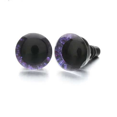 Супер-качественные глаза для игрушек с безопасным креплением. Объемные из прозрачного акрила с черным зрачком. На винте. в комплект входит цветная блестящая радужка фиолетового цвета. В упаковке 2 штуки (1 пара).