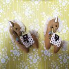 Очень симпатичные мини-игрушки выполненные в винтажном стиле (шебби-шик). Могут применяться для кукол и других игрушек. Сделаны из хлопка. Украшены вышивкой, цветами и лентами из текстиля. Высота вместе 95 мм. Могут быть декором для бижутерии (например броши), брелоков сумок и одежды. Без петельки для подвешивания.