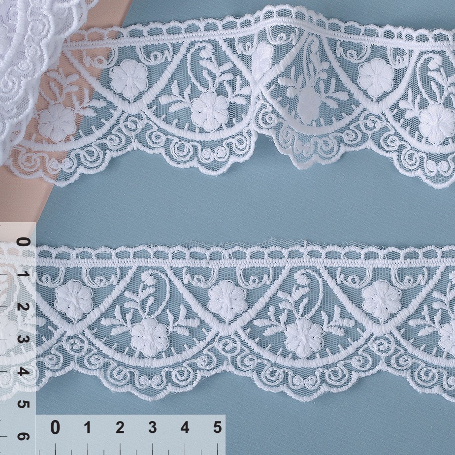 Очень красивое и нежное кружево на мягкой сетке с матовой нитью от бренда Kruzhevo. Воздушное, тонкое, приятное на ощупь. Кружево на сетке подходит как для шитья, отделки, так и для скрапбукинга, изготовления кукол, свадебных украшений и одежды в стиле эко, бохо и шебби-шик.