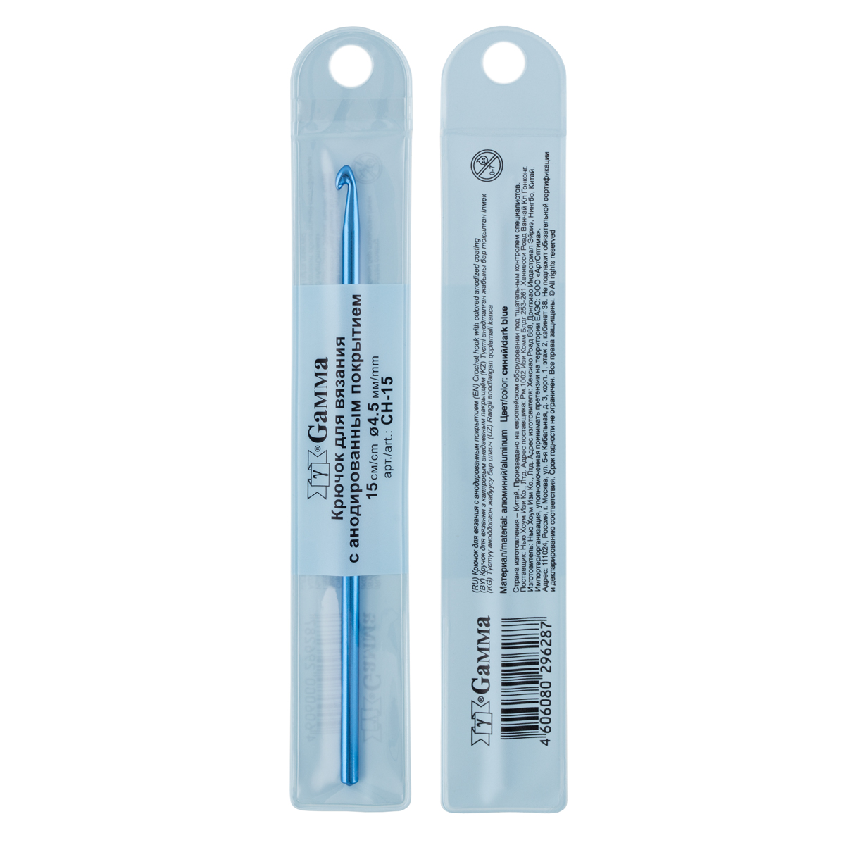 Крючок для вязания цветной алюминий Gamma d 4.5 мм 15 см. в чехле (CH-15)