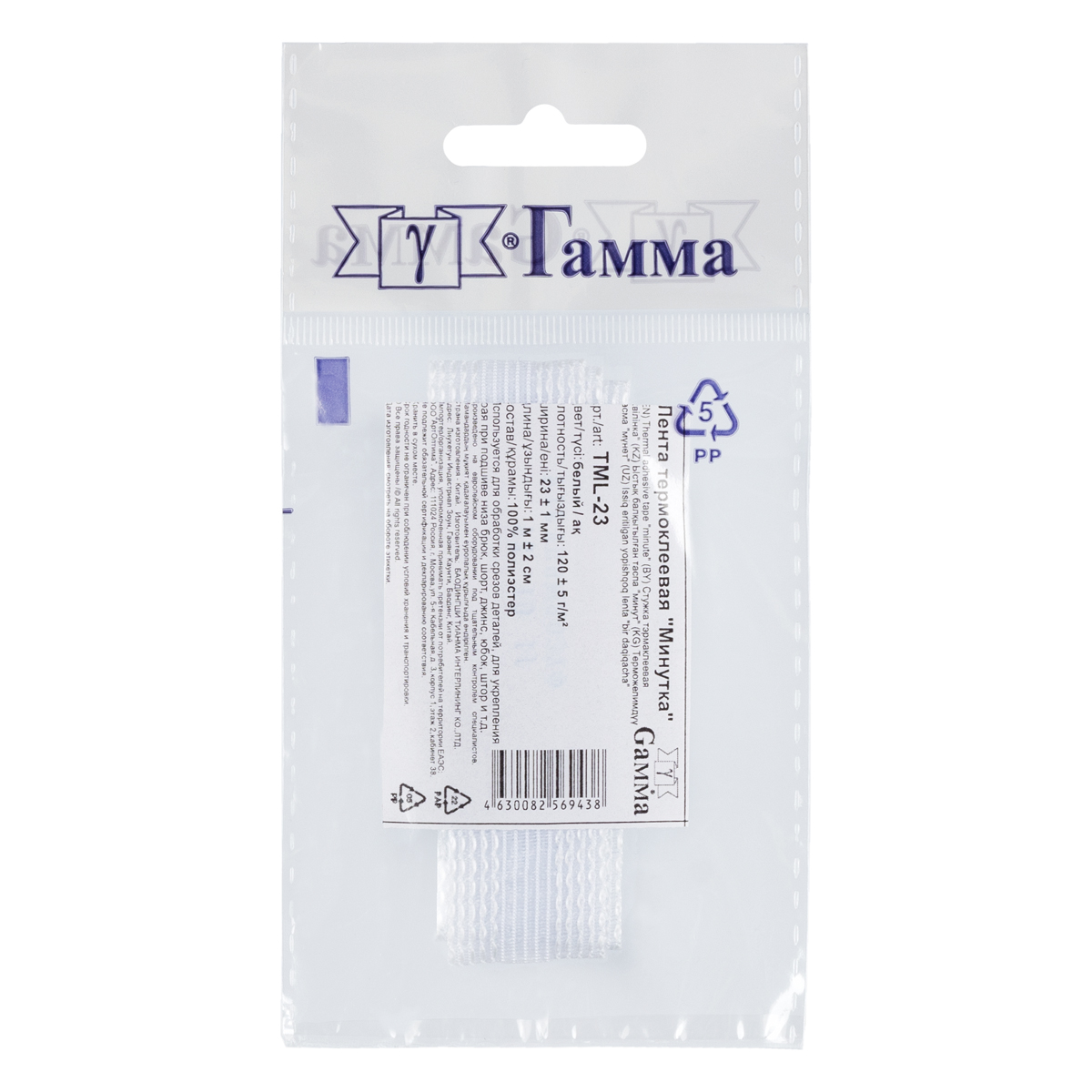 Лента термоклеевая "Gamma" TML-23 белого цвета используется для обработки срезов деталей, для укрепления края при подшиве низа брюк, шорт, джинс, юбок, штор и т.д., а также, иногда применяется для увеличения жесткости манжет, воротников и других деталей.