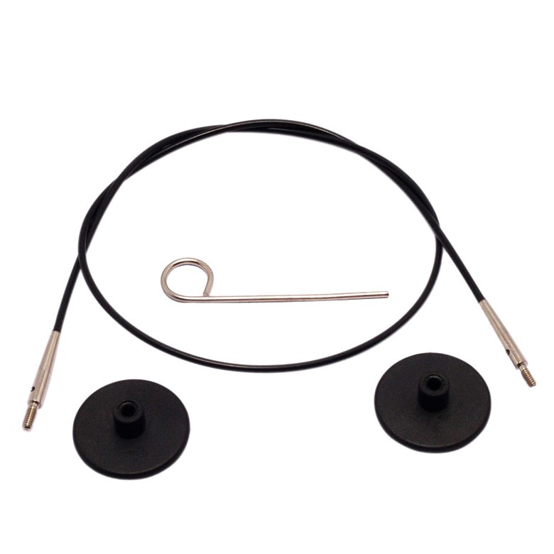 Леска (тросик/кабель) для разъемных спиц черного или бордового цвета, завинчивающаяся. В комплект входит металлический ключик (действует по принципу рычага при прикручивании/раскручивании лески) и 2 заглушки для концов лески (даёт возможность снять изделие со спиц на леске). Леска KNIT PRO подходит также для разъемных спиц LYKKE, PRYM и LANA GROSSA.
