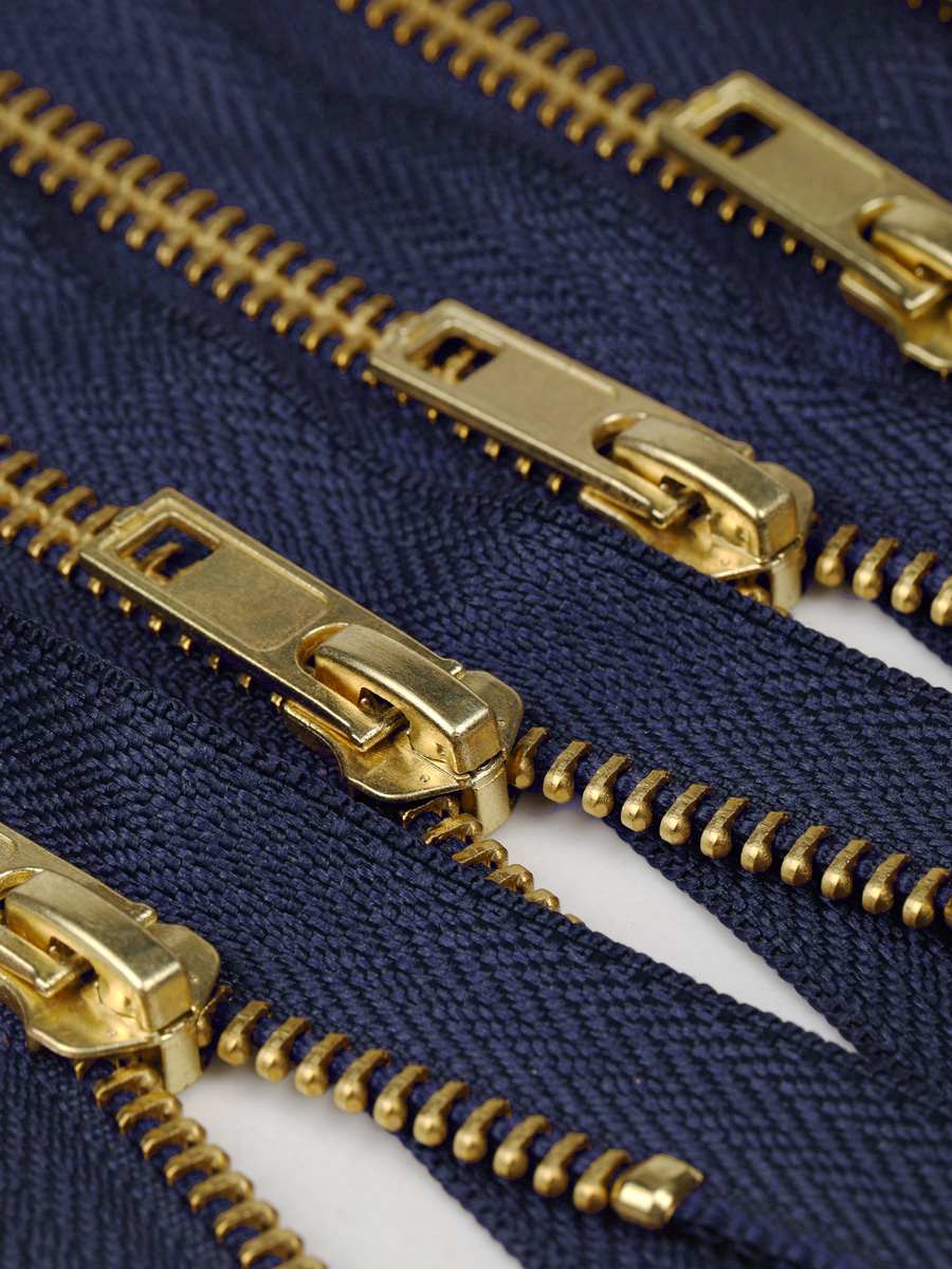 Металлическая молния – разновидность тракторной застежки, ее зубчики делаются из латуни или никеля. Замок с железными зубчиками используется для джинсов и другой одежды из плотных тканей.