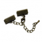 Заготовка для браслета/ колье в виде концевиков-наконечников типа Крокодильчик (с зубчиками) с карабином и цепочкой удлинителем, цвет БРОНЗА. 2 комплекта в упаковке. Размер (ширину) наконечников выбирайте в модификациях.