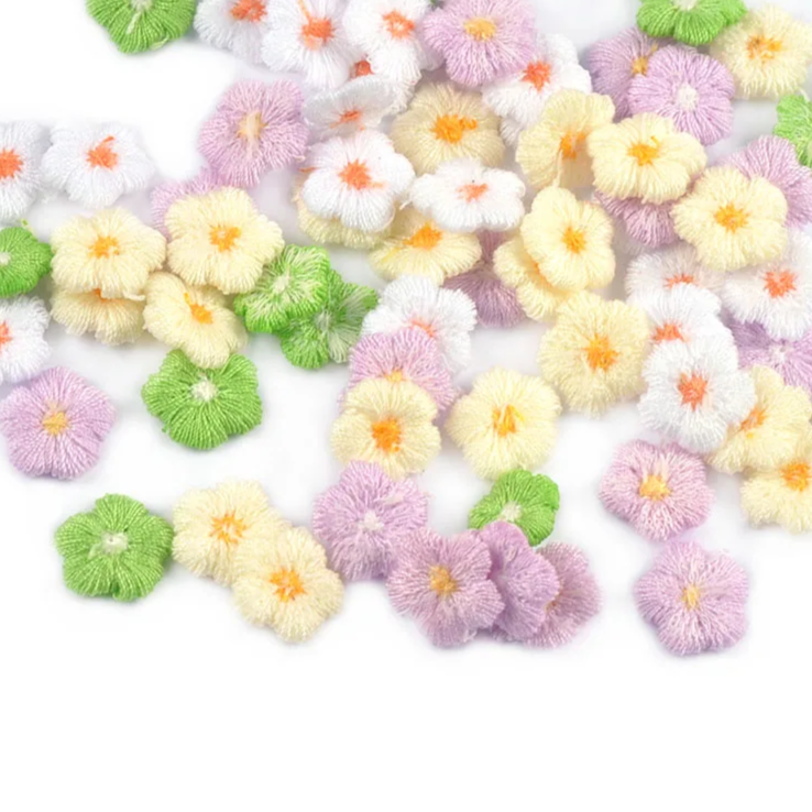 Нашивки - Аппликации Цветочки из пряжи мини Нежный микс 12 шт в уп. (3010-12)