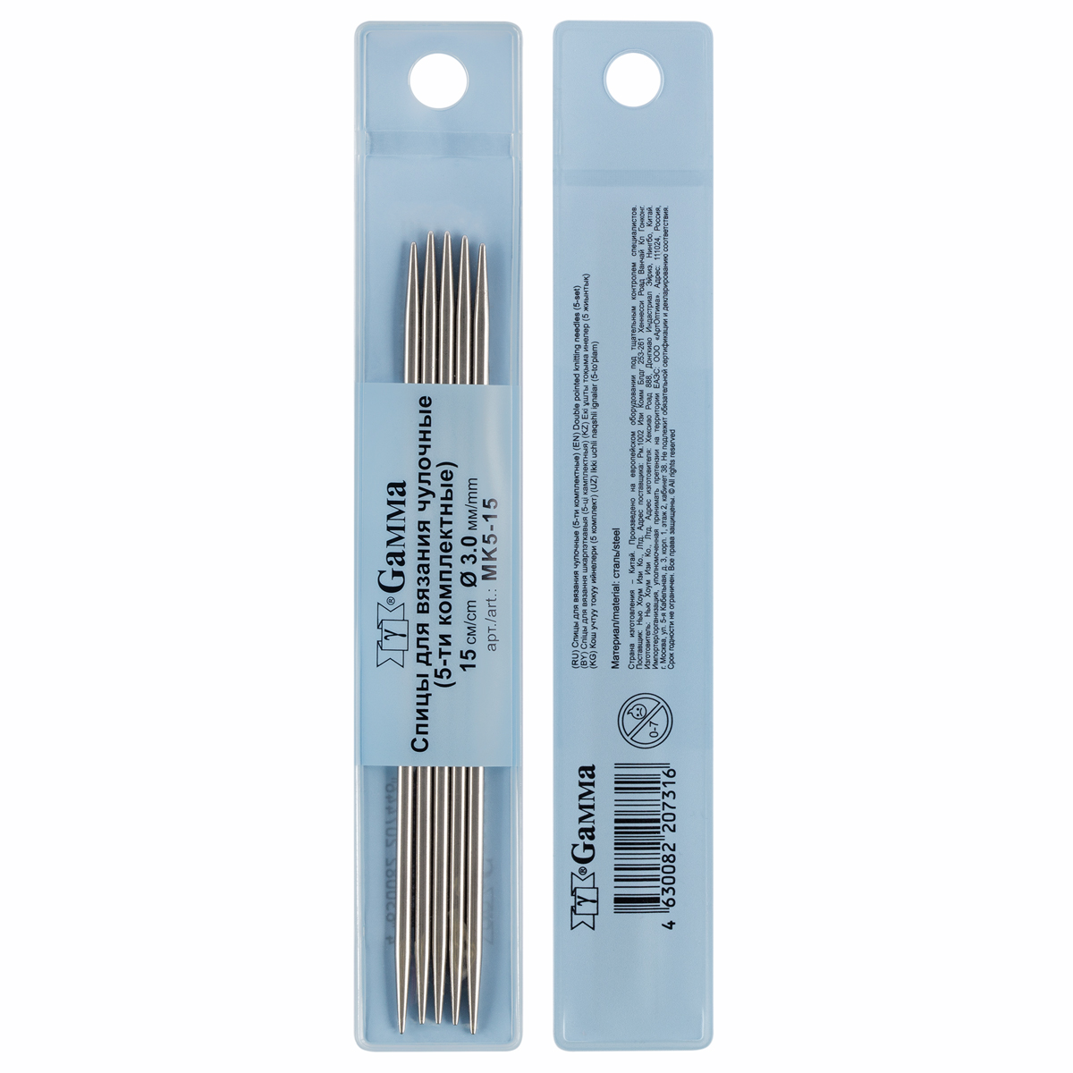 Спицы GAMMA чулочные стальные 15 см 5 штук в комплекте (MK5-15)