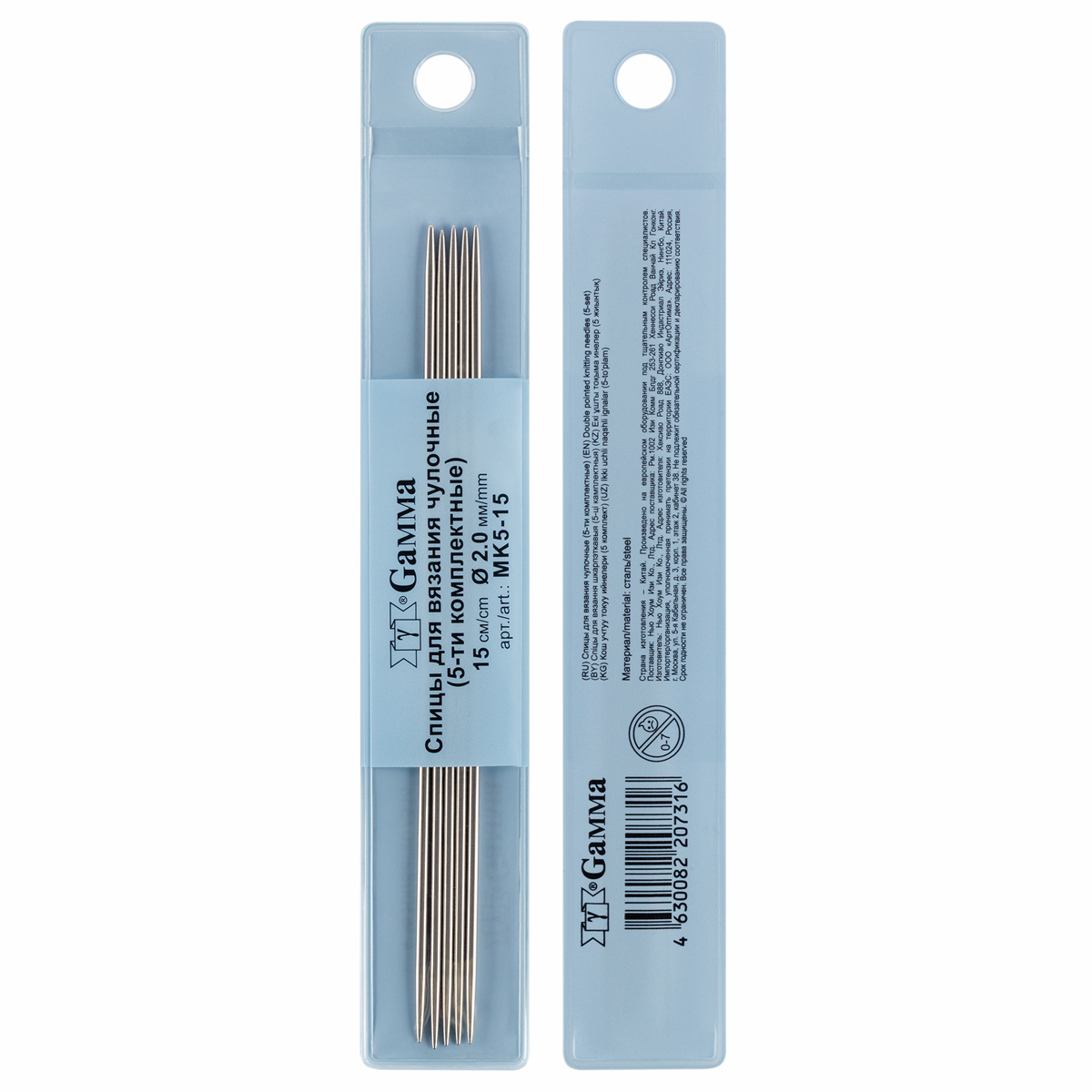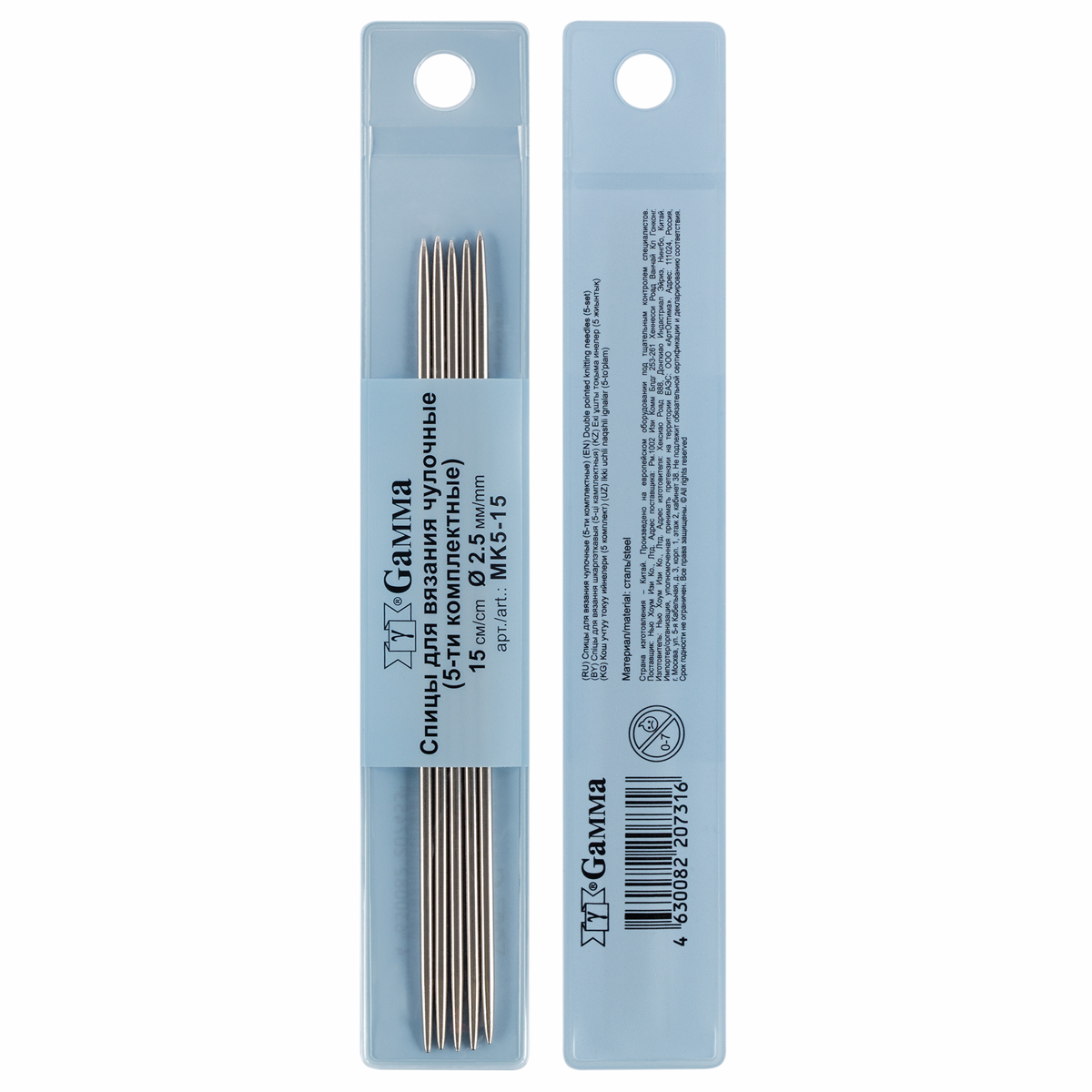 Спицы GAMMA чулочные стальные 15 см 5 штук в комплекте (MK5-15)