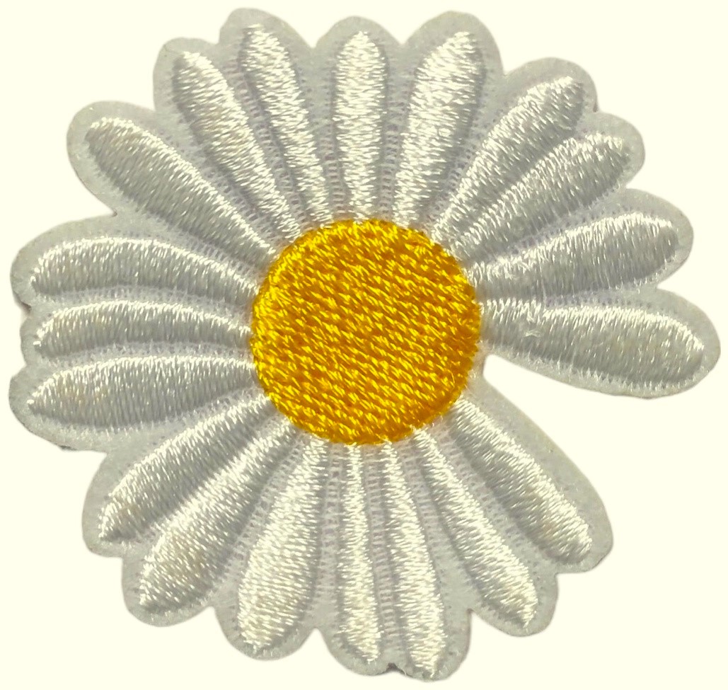 Термо-аппликация (патч) среднего размера с изображением ромашки. Вышивка. Размер 42 мм х 42 мм. В продаже от 1 штуки.